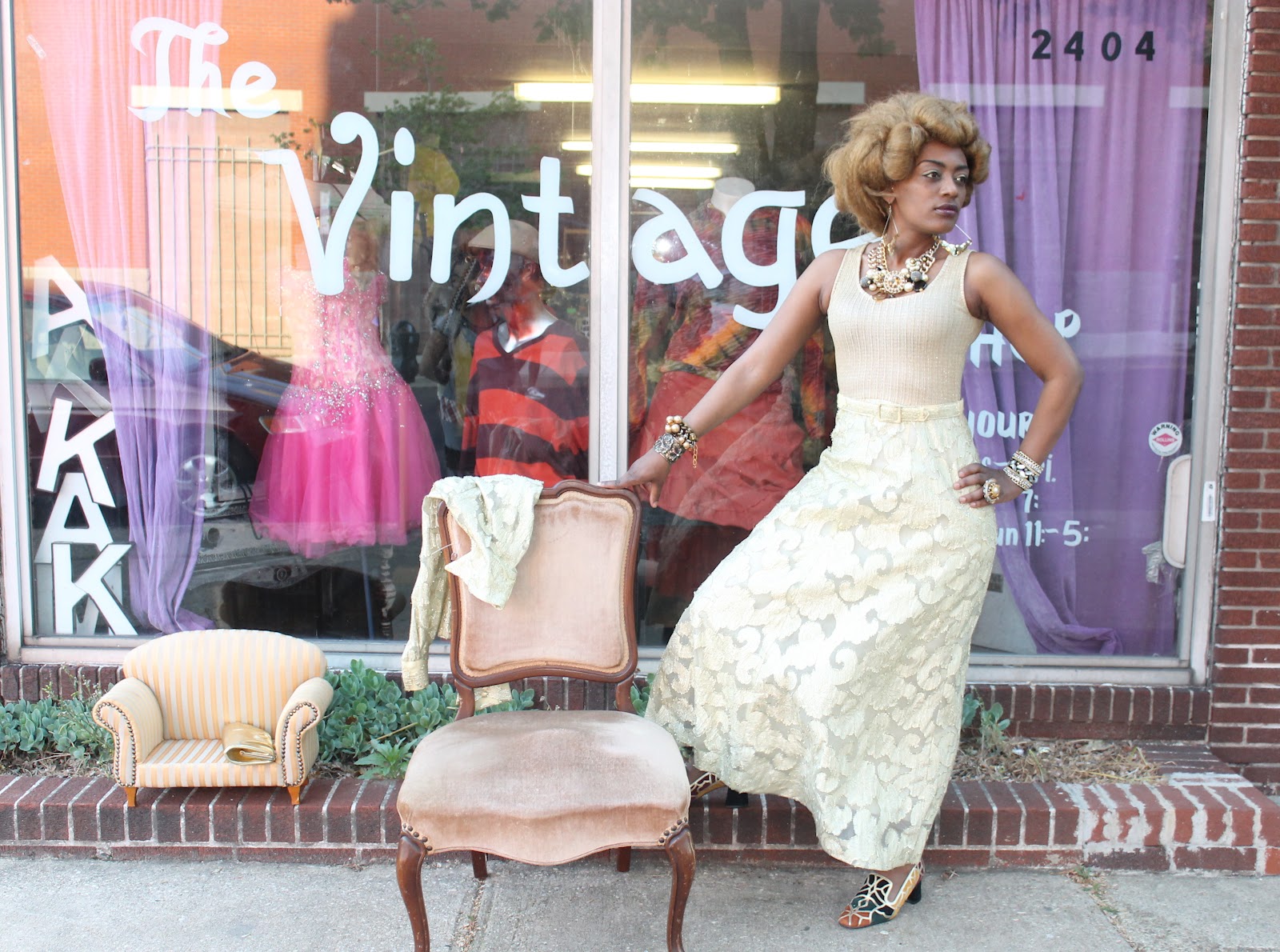 | All clothing and jewelry courtesy of Makkah’s Crushed Velvet Vintage Shop |