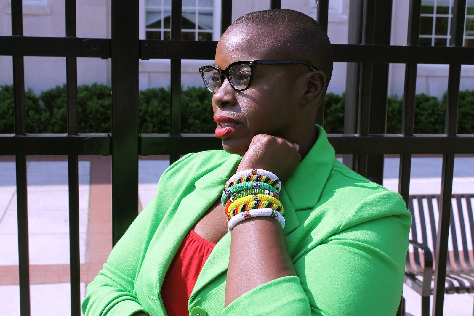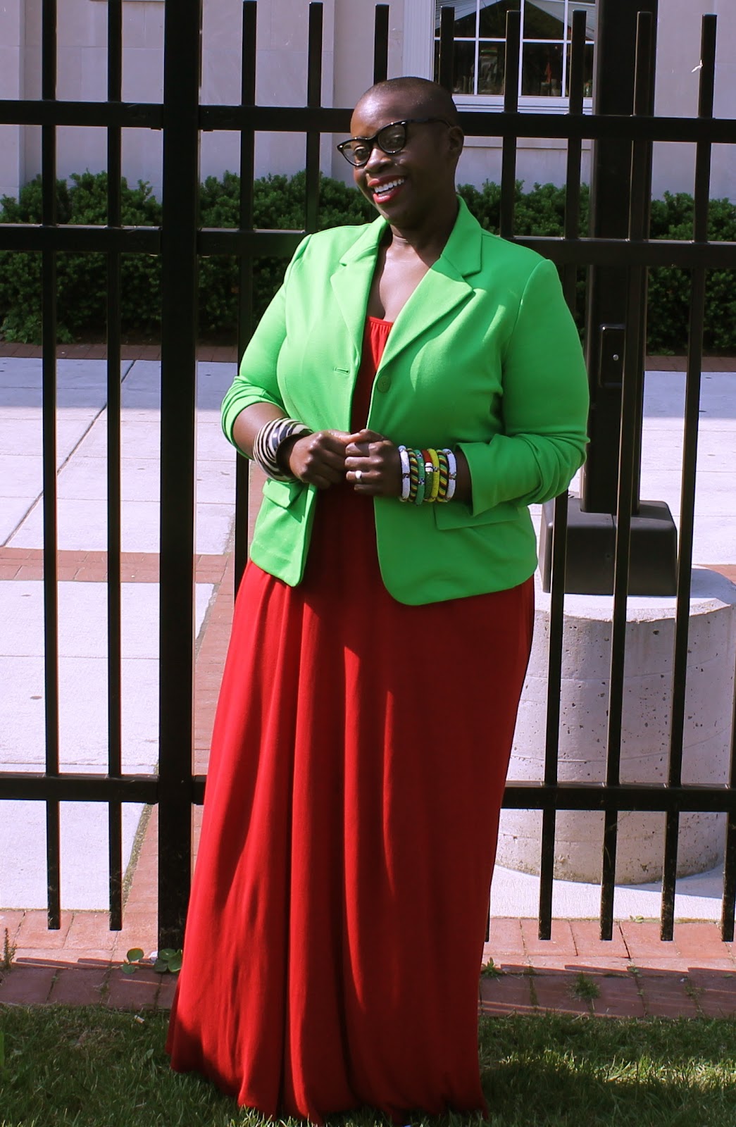 | Blazer: Gap, Dress: Old Navy; Bracelets: Patapsco Flea Market |