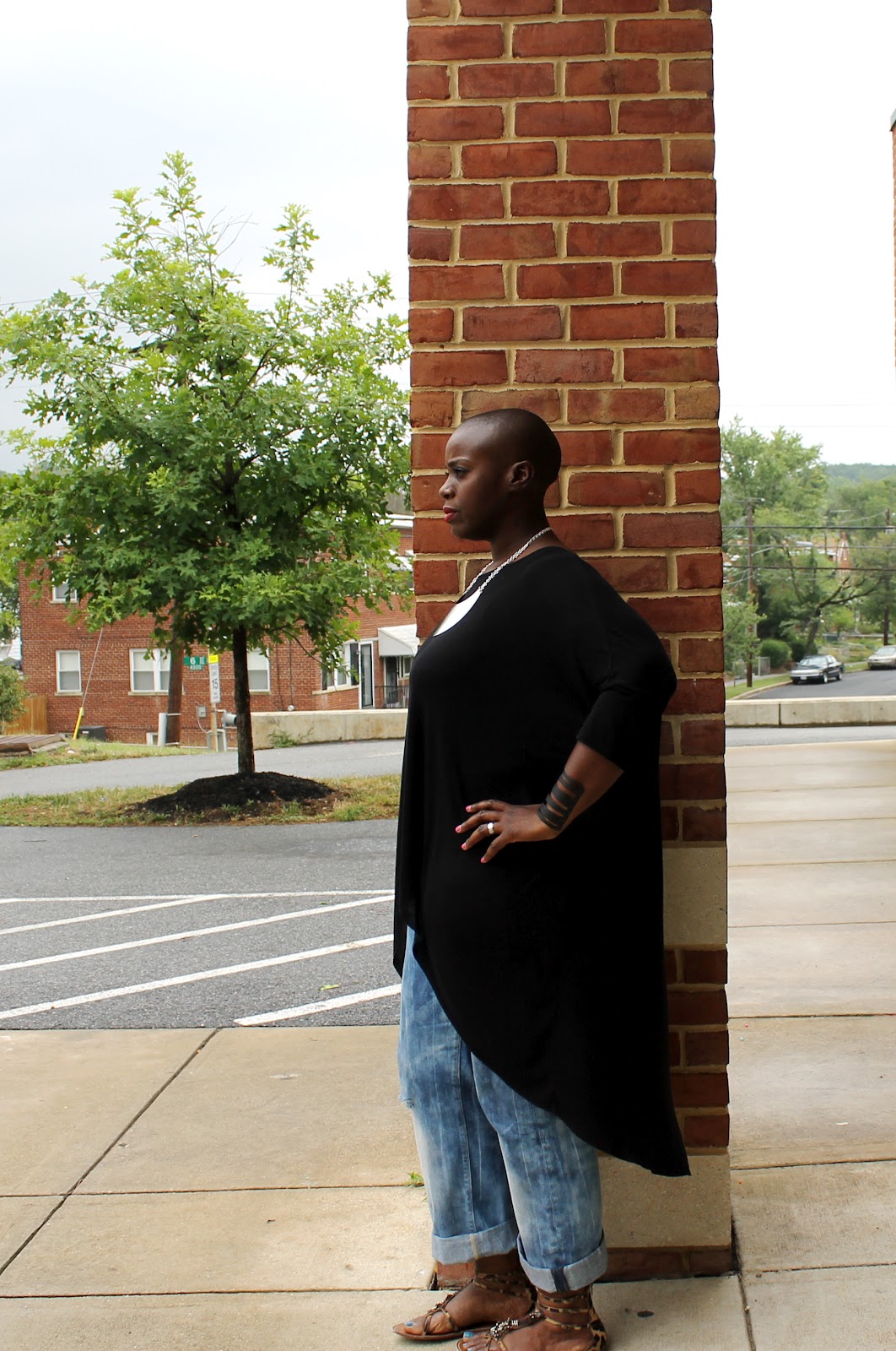 If you live in the Northeast, you, too have been experiencing almost torrential rains for over a week. It is difficult to be cute in this kind of weather, but this blog isn’t about being cute all the time. It’s about being real. So here is an outfit I wore yesterday to go teach a workshop to a group of girls. The weather was cool, so I grabbed my favorite pair of boyfriend jeans. These were thrifted a couple of years ago and they are actual men jeans. No DIY here, they came like this. Perfect from the day I bought them. I decided to pair them with this top from ASOS. They have tons of this shirt style on the site, in a variety of colors and prints, but I think the black is the sleekest. The hi-low trend is nothing new, but as I have said before, I usually try a trend several years after it is over. LOL Anywho, I threw on this great “silver” necklace that I purchased from Ashley Stewart for practically nothing, and this was my ensemble for the day. Easy, breezy, comfortable, and appropriate for the work at hand.