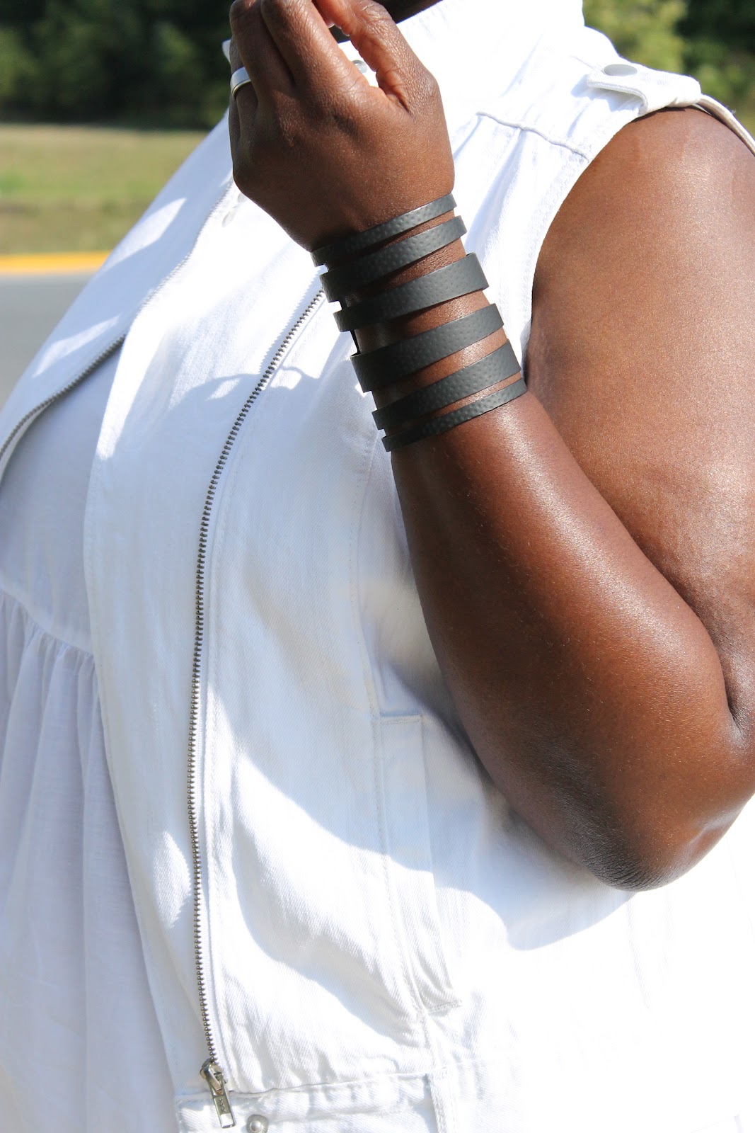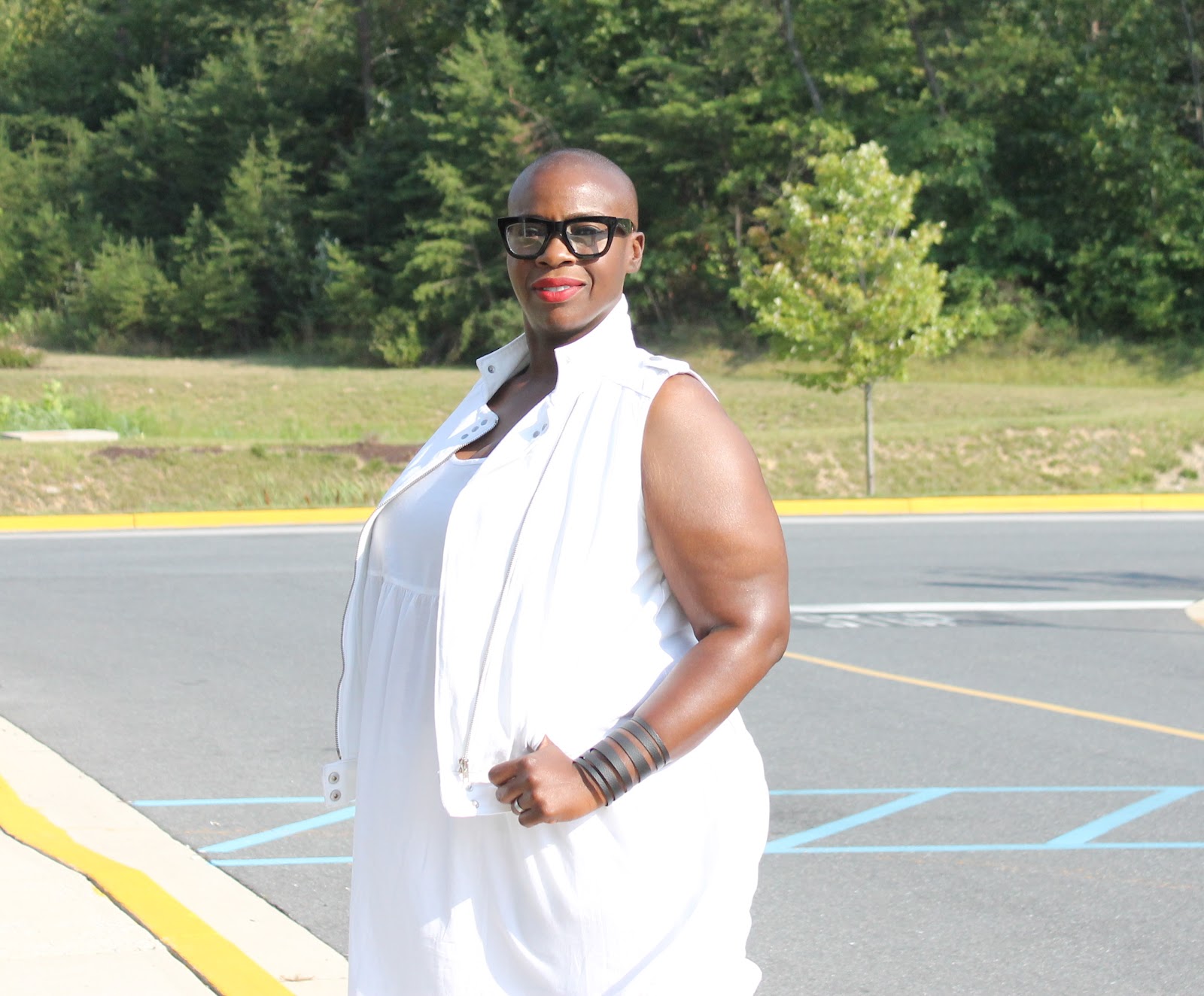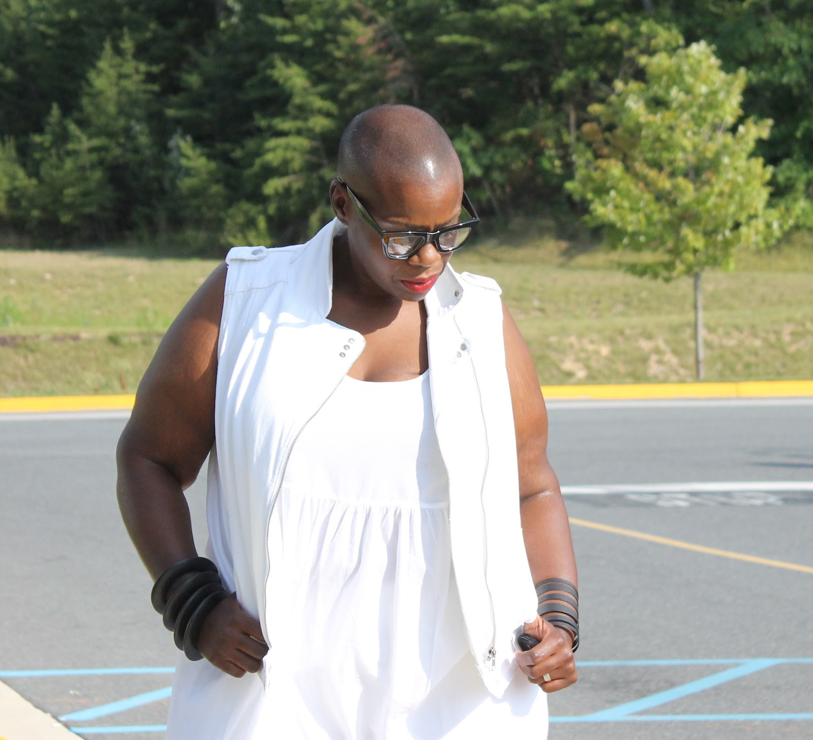 Me and my friends attended Curves Rock Weekend in Baltimore this weekend. Curves Rock is a movement to encourage women to embrace their curves and enhance them with fashion. I knew that because this was a plus size “fashion” event, I would see the usual Bodycon dresses, Colorblocking, and of course, all-black at this event, (things I personally LOVE) so I decided to throw together white garments from my wardrobe to create what I consider a slightly edgy look. I was thoroughly pleased with the results, as the items alone do not read edgy. I also stood out as the only person in all white. To ground the ensemble and prevent it from being too cookouty (word?), I added black, tough accessories and wedges to up the edge factor. I likey…