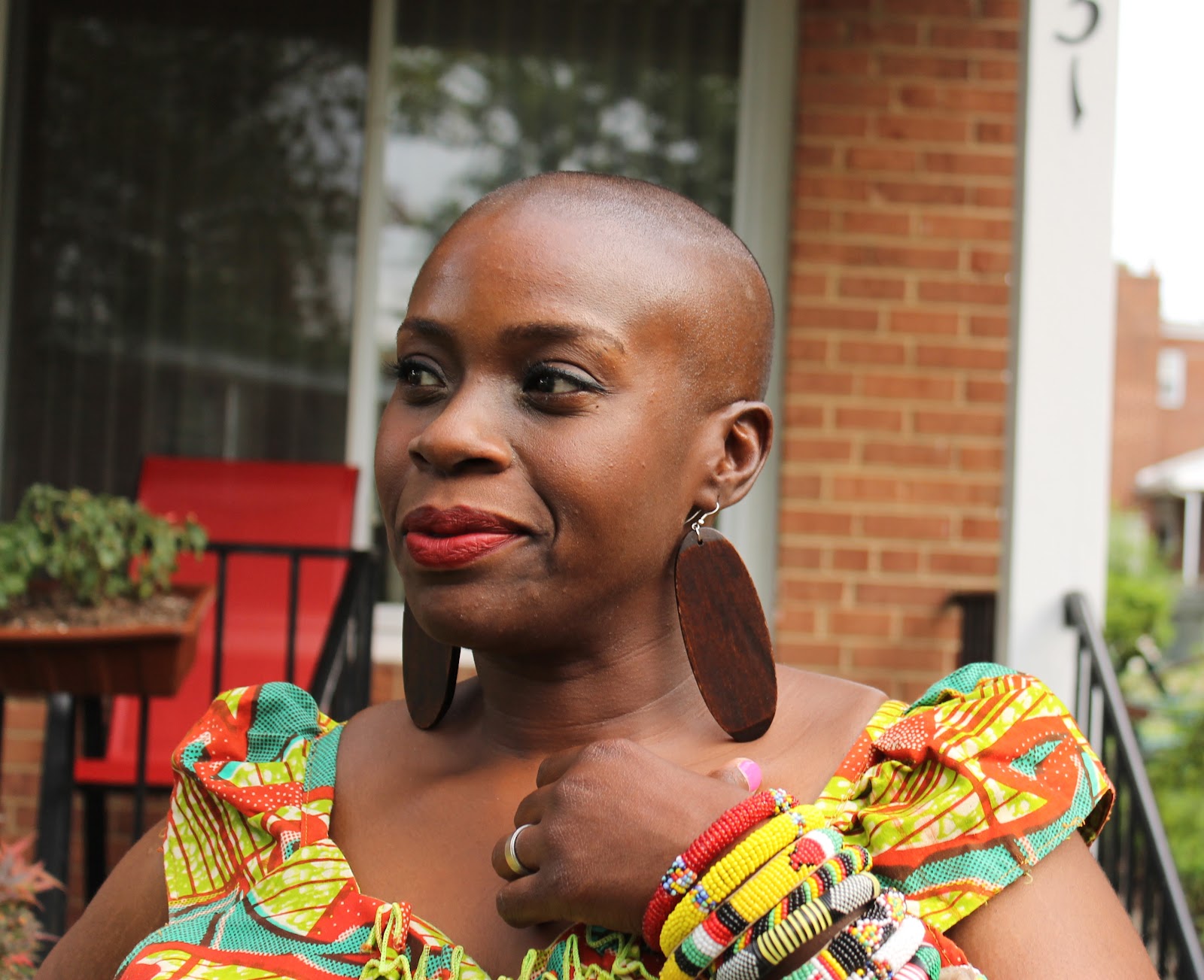 | African print top: thrifted, Red Jeggings: Gap |