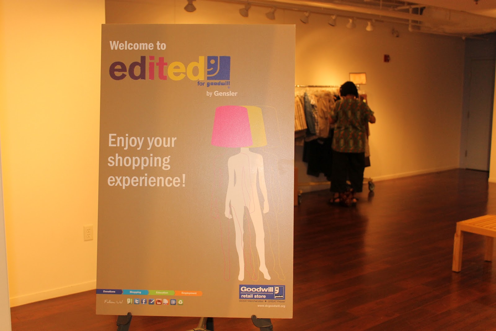 Edited for Goodwill is a collaboration between Goodwill, Pepco (the electric supplier) and Gensler architects. Funds raised from all sales at the pop-up event will go towards the construction of a new Goodwill donation center and store somewhere in DC. I went into this event with very few expectations. It is, after all, Goodwill. Now, I am a frequent patron of Goodwill, but a thrift store is a thrift store. But this was slicker, sleeker, more carefully planned than what I could have imagined. It didn’t even feel as if I was thrifting, but perhaps that was the point. The fashions were edited and carefully selected, which was fine for some, but I heard the grumblings amongst the true fashionistas and thrifters. Overheard: “Where are all the vintage pieces?” They were nowhere in sight, in fact they were nonexistent. A big change from the Goodwills I frequent in the area.