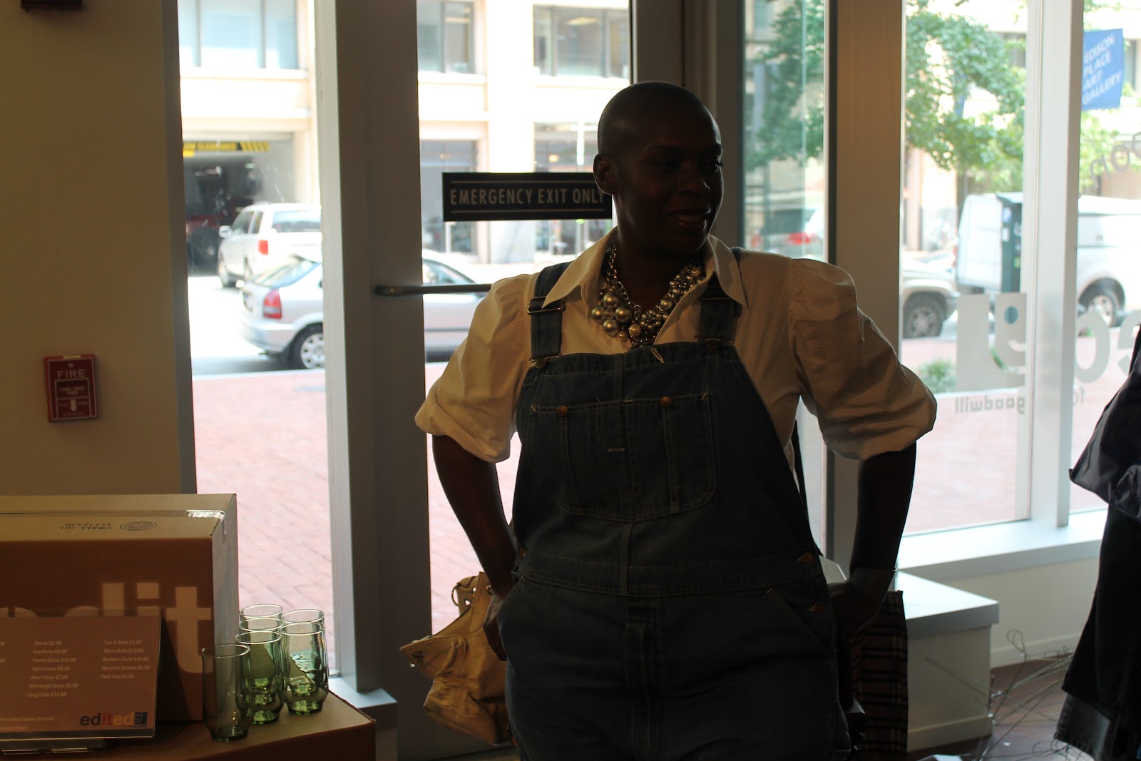 To honor Goodwill’s fundraising, I decided to pay homage to thrifting in general and wear an outfit that is wholly thrifted. Admittedly, I left the pop-up event soon after coming into the place, because I was not in the mood for thrifting today. I snapped some pics and as you can see, the design of the space was well executed and looked inviting. This was cool, but give me my mangy, smoke diluted with disinfectant smelling Goodwill… Ahhh. The thought of the stench of used clothing makes me so happy…LOL