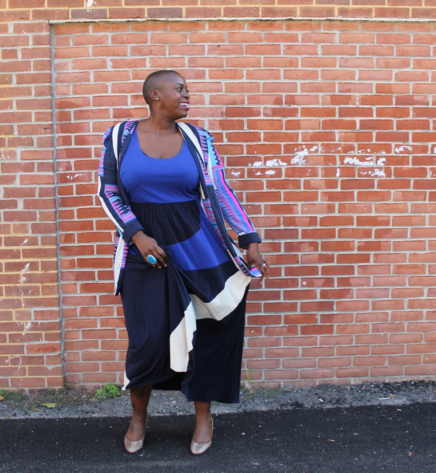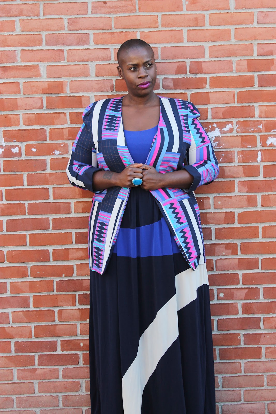 You rarely every see me wear Maxi dresses on this blog. I am not a fan of Maxi dresses because if it is going to be a maxi, I want it to drag the floor. But, at 5’8.5″, it is almost impossible for me to accomplish this. I have had luck at both Gap and Old Navy, but that is because they carry tall and long sizes (which usually are too long, but that happens when you are on the “short” side of tall), But I fell in love with this dress when I saw it on the Eloquiiwebsite. I have another dress that I bought from Eloquiilast year, and the material was a thick, seasonless jersey that I love. So, I thought, why not? Plus, I thought that this dress can take me through all four seasons we experience here in DC. Yet another score for me as I attempt to be more like my friend, Teriyana, whose wardrobe is seasonless and so weather appropriate at the same time. I paired this sleeveless dress with this great blazer that has been hiding in the back of my closet for months (never worn) and I felt light and airy AND autumn-ready simultaneously. Autumn, I await you…