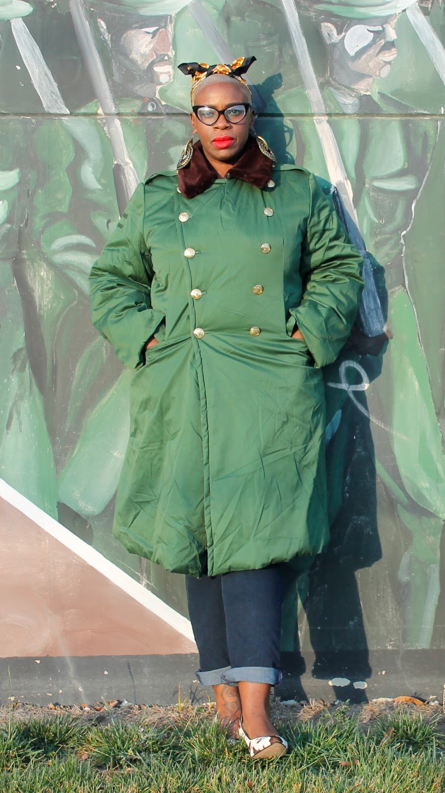 This post is all about the coat. My friend, Makkah, from Revolution Vintage Shop gave this coat to me and MADE me wear it. Now, I am not about a long coat, but as the temps decrease even more, they are beginning to look more and more attractive. And this coat is anything but flattering. I truly believe it is a comforter with buttons, but hey, it gets the job done.