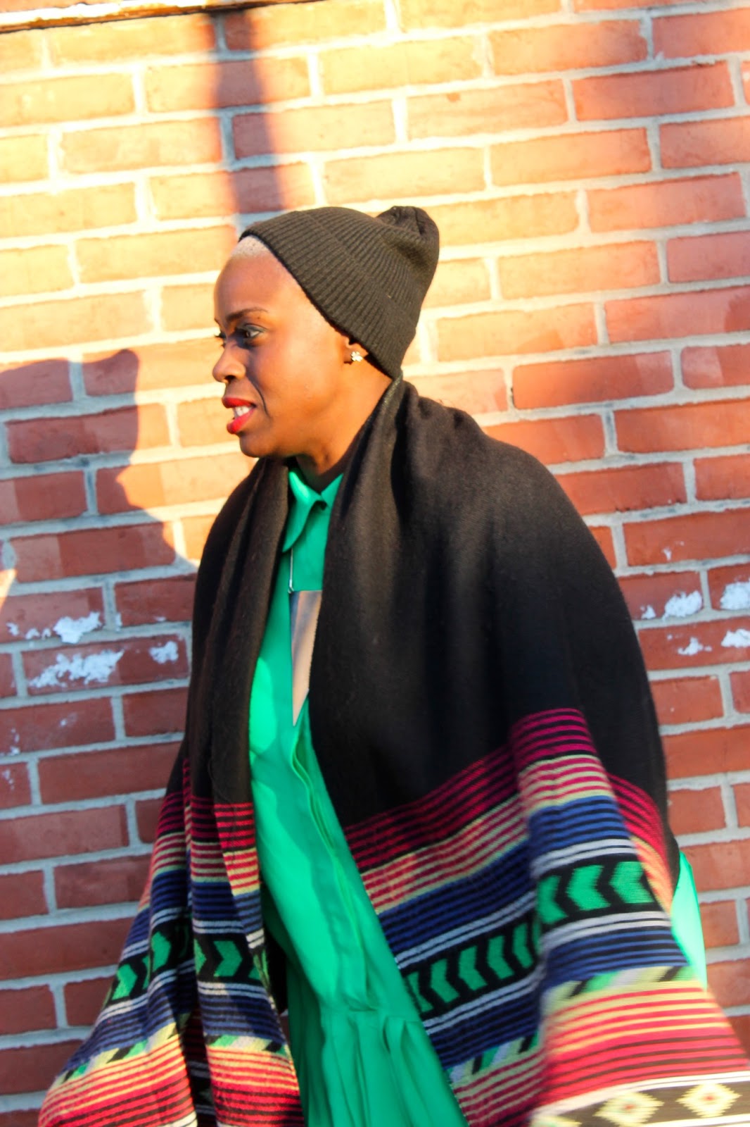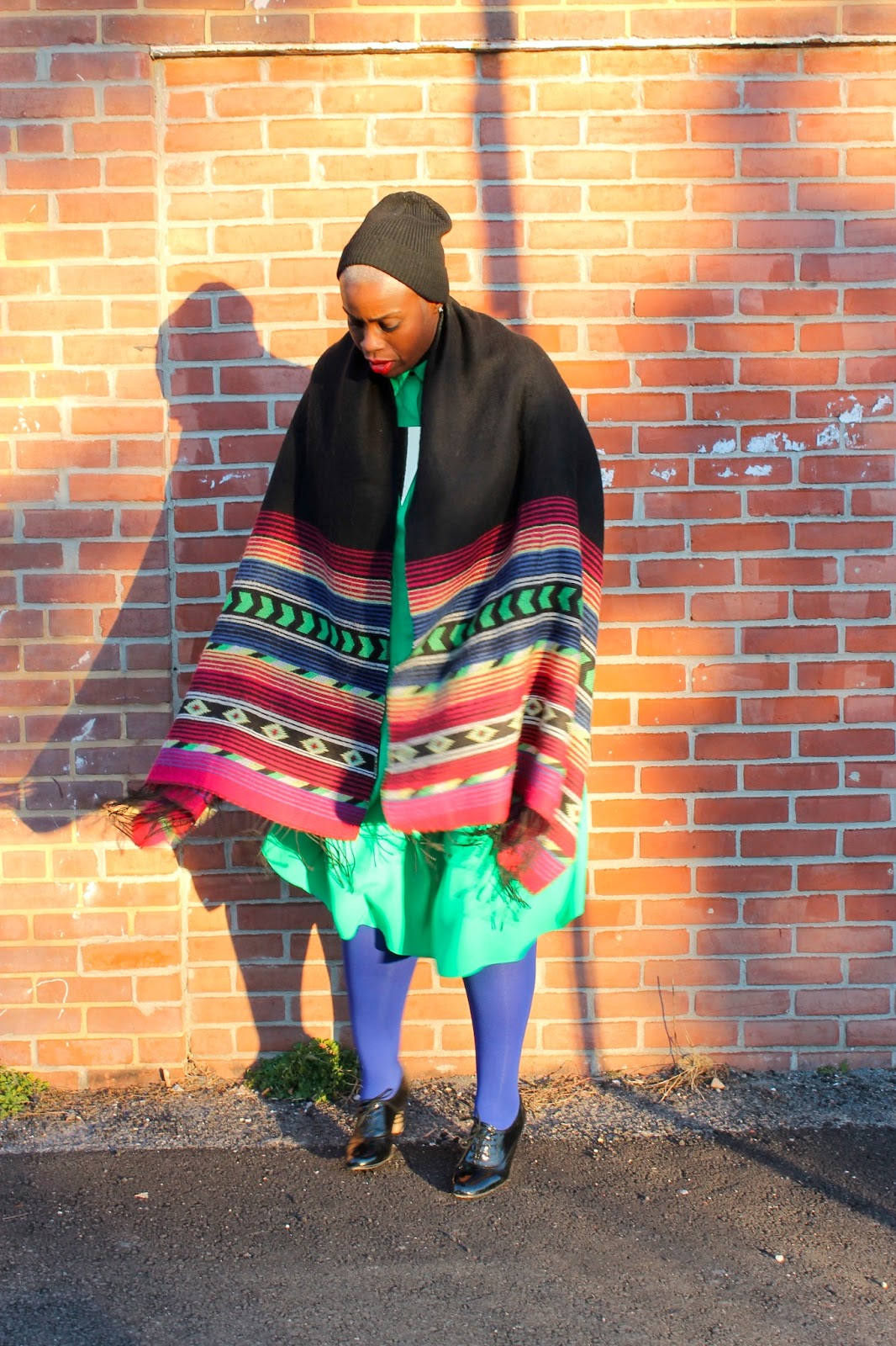 My love of big, voluminous clothing has been documented through the clothes that I wear here. But I think my desire and absolute obsession with big clothing has shifted into my outerwear. Very rarely do I wear a coat anymore, although DC has been braving very cold temps this year. Instead I tend to throw a huge blanket scarf over everything, a beanie to protect the bald, and I’m out. This scarf is indicative of what I consider an appropriate winter ensemble. Never mind that it was 19 degrees outdoors when I took this pic, I am weather appropriate.