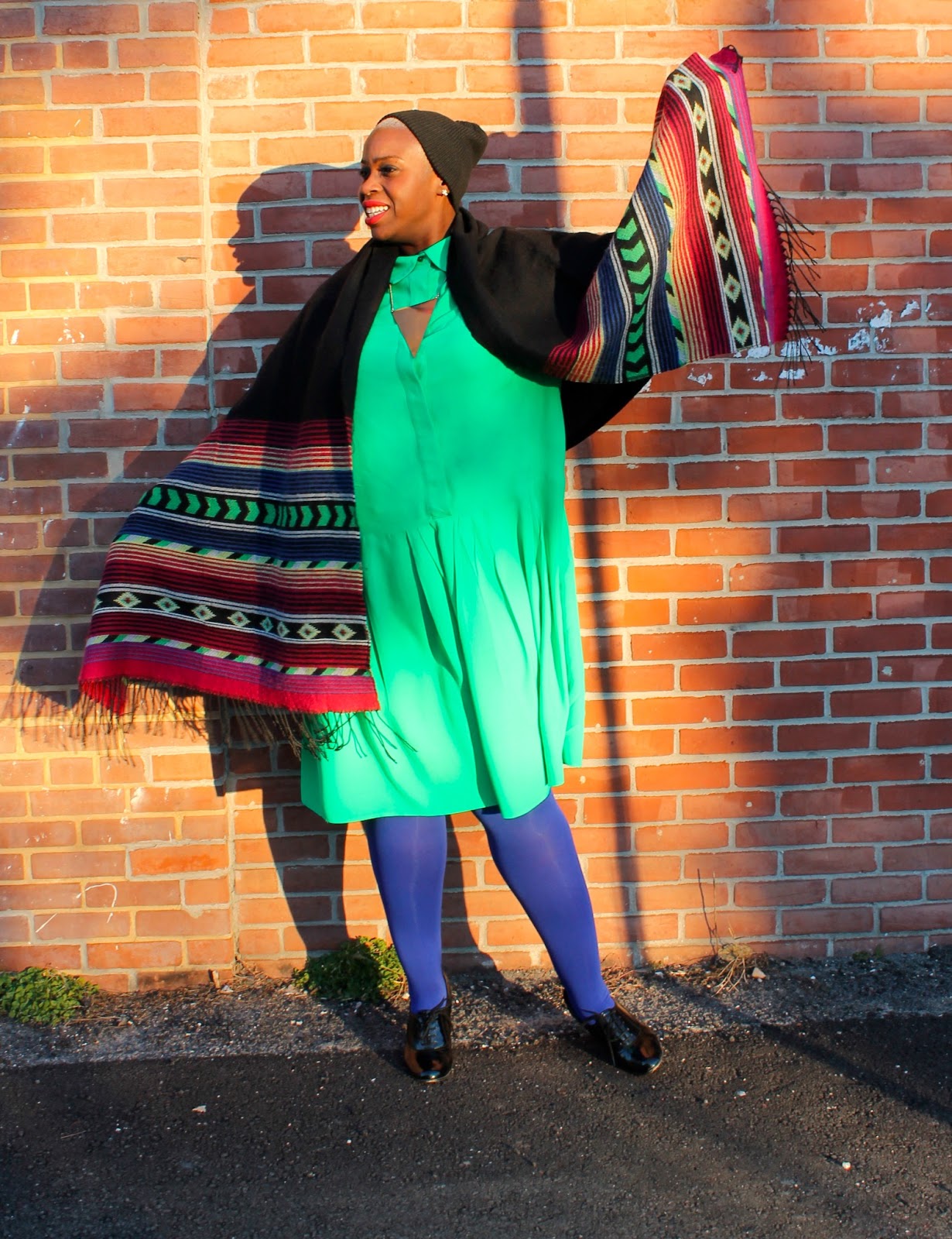 | Dress: Asos Curve, Tights: Hue, Scarf: H&M |