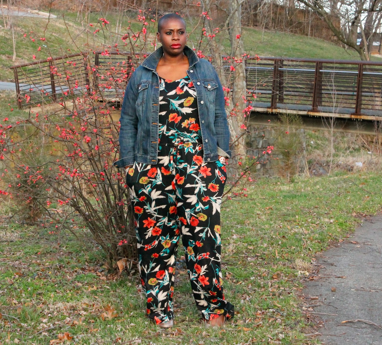 Okay, hopefully you remember the Spring Trends challenge me and a few other bloggers are participating in (find it here) This week’s challenge asks for an interpretation of the huge Floral trends that has been seen up and down the runways for a while. Here the conundrum…I hate floral prints. I mean absolutely hate them. I think that florals on clothing is sacrilegious to the point of being profane. Maybe it’s because I have severe allergies and have been taking Allergy shots for over 5 years, or maybe floral prints remind me of the drapes/carpet/rug/sofa/china pattern set my grandma was determined to match to each other. I don’t know where it stems from, but the hate is real. But, Simply Be has created the most perfect combination of floral and jumpsuit. Instead of the sweet pastels that usually accompany spring florals, this one-piece jumpsuit decides to darken up and use a navy background with florals reminiscent of autumn. Just my style…