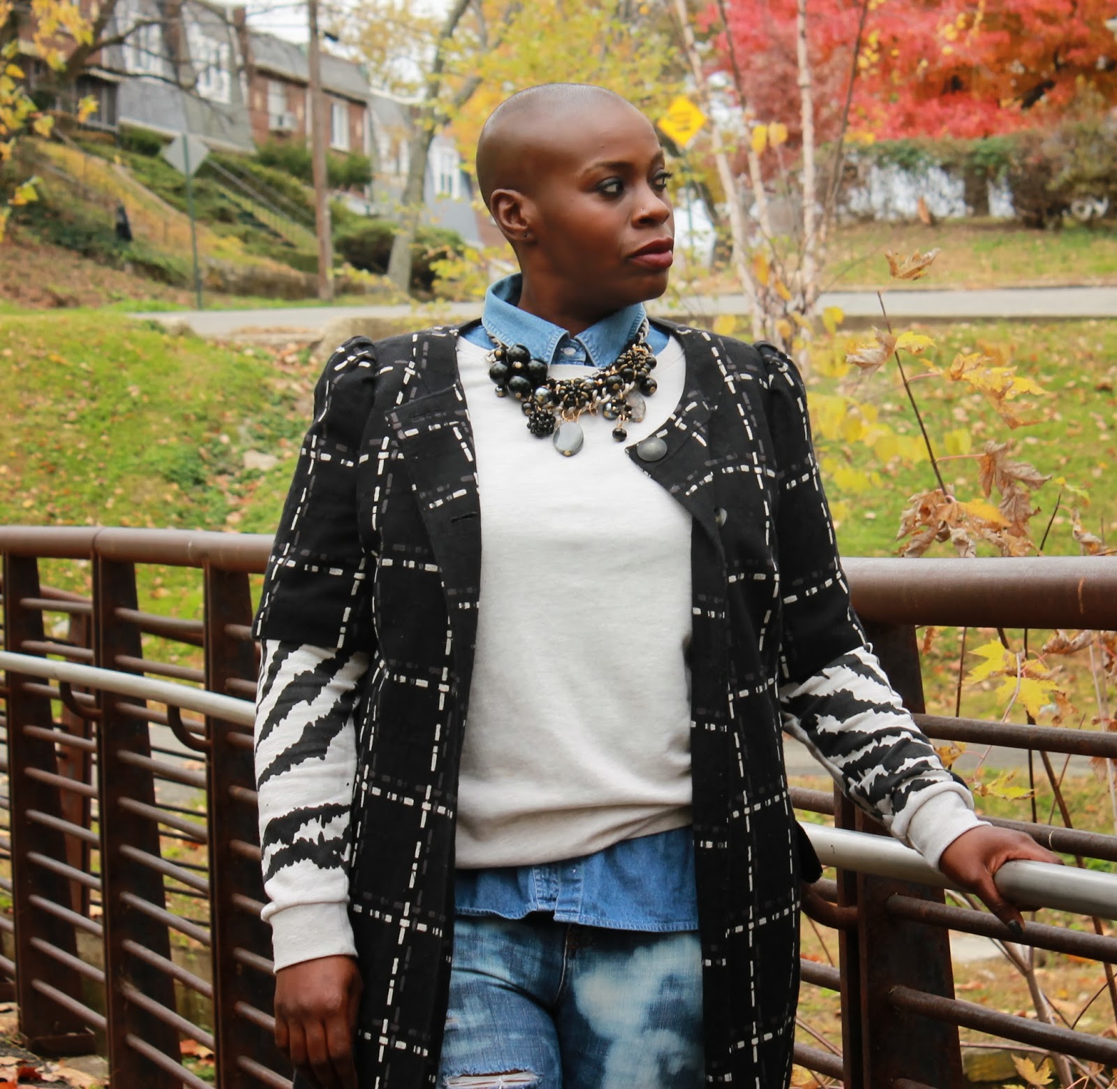 | Short Sleeve coat: Nordstrom (super old), Jeans: Thrifted, Jean shirt: Thrifted, Sweatshirt: Forever 21+, Shoes: Buffalo Exchange |