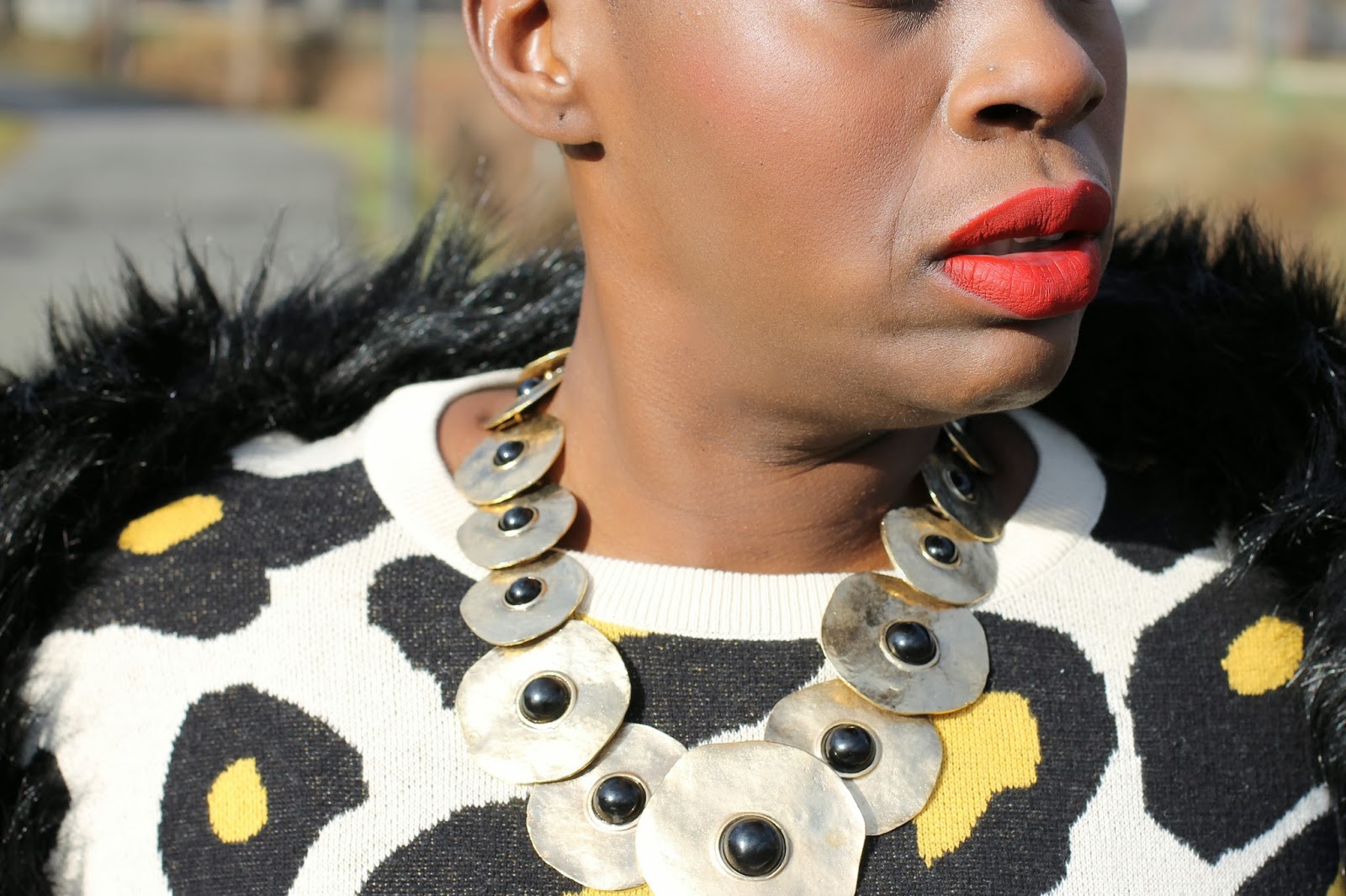| Leopard Sweater: Forever 21 (sold out), Leopard Skirt: Eloquii, Tights: Spanx, Peeptoe Booties: Uggs |