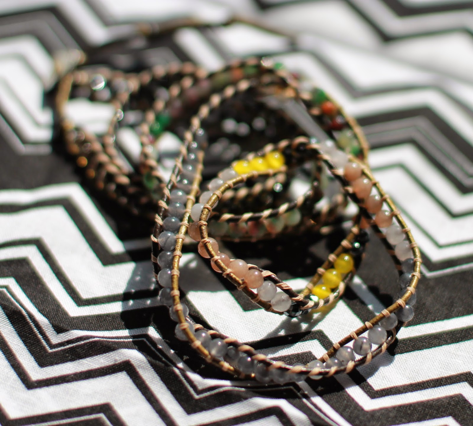 | Nakamol Mixed Crystals Five Times Brown Leather Wrap Bracelet |
