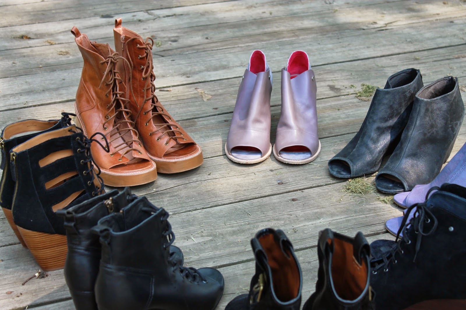 I am the queen of peeptoe Booties. Because they allow your toes to be free, they are completely appropriate for summer, but because the majority of your foot is covered, they provide warmth in the Fall/Winter seasons. Brilliant, right?… And there is something so badass about having the nerve to cut the toe completely out of a boot. Here, my collection of peeptoe booties. And no, one pair and one style is not enough. Ha!